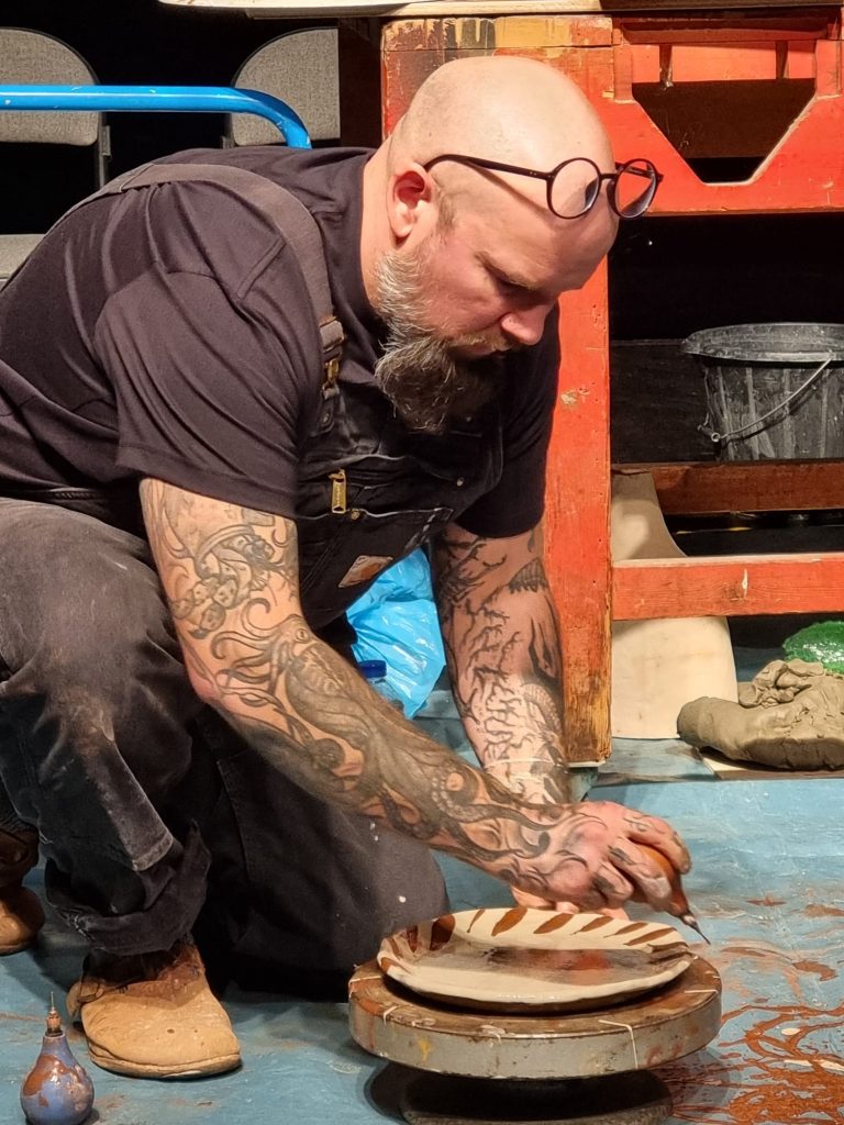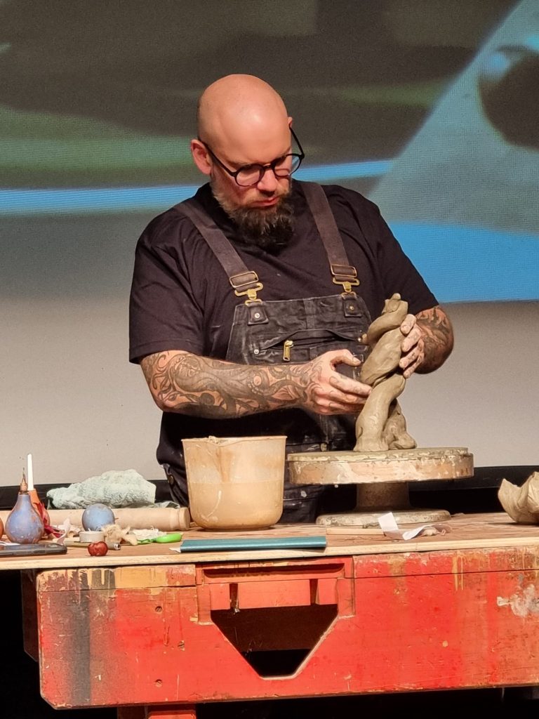 0ur second Potters Open Day of 2025 featured Poet Caroline Bird , Ceramic Sculptor Sharon Griffin and Slipware Potter Russell Kingston – it was an amazing day of performance, discussion, virtuoso slip trailing and sculpture and poetically inspired collaboration, which explored the mechanics and the drivers of creativity. Watch this space for details of next year’s POD!