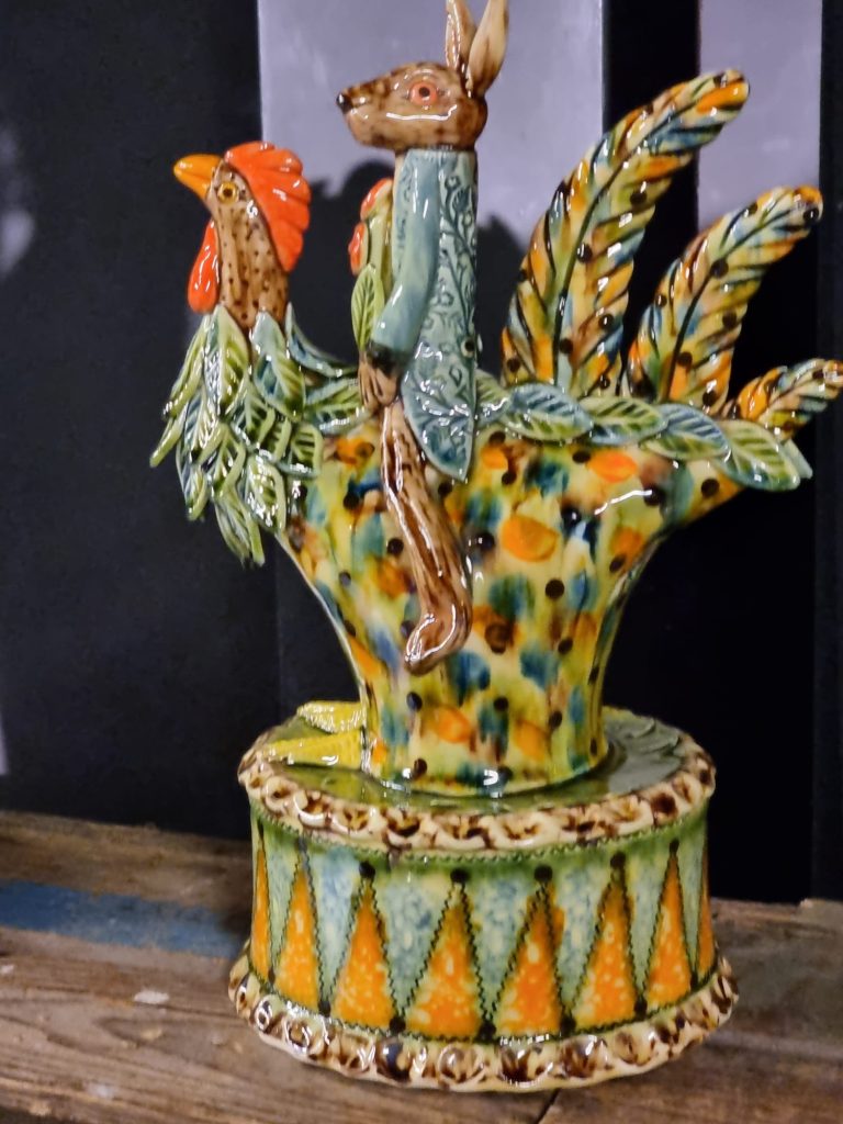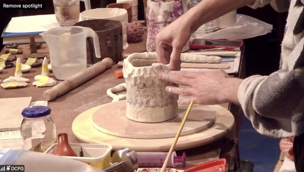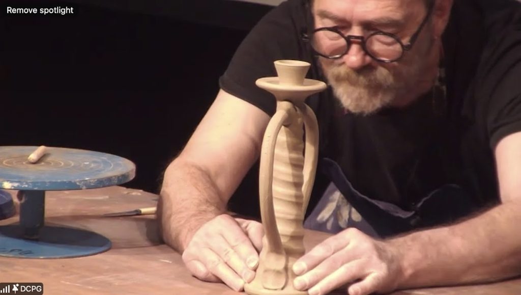 Demonstrator Paul Young who draws on English earthenware, slipware, and European folk art, especially the Staffordshire wares of the 18th century, blending tradition with a modern, personal touch.